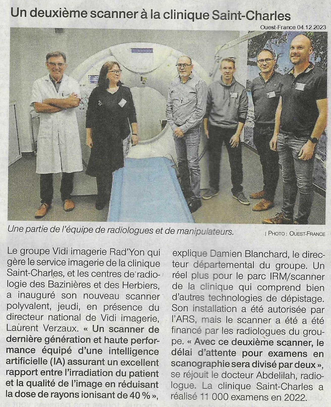Installation d’un deuxième scanner à la Clinique Saint Charles
